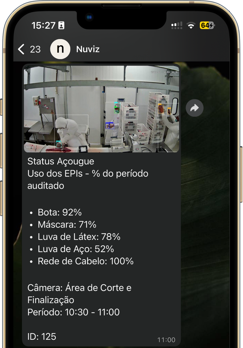 O supervisor é notificado via WhatsApp no momento da infração, permitindo correção imediata e prevenção de risco operacional.